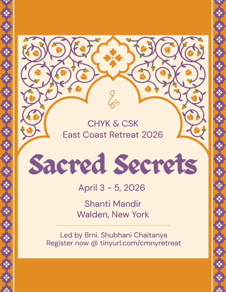 The CHYK / Setukari study group in New York City is a group of young professionals who are seeking to practice spirituality in their daily lives and stay steady amidst the dynamic city. The class incorporates elements of both discourse and interactive group discussions guided by Brni. Shubhani Chaitanya. The youth also engage in several projects such as creating reflection books and relay jnana yajnas which give them a chance to delve deeper in the meaning of our scriptures. Many of them also actively teach Bala Vihar in New York City and volunteer in special events and retreats. This year, the group will meet in a hybrid format to explore Pujya Gurudev’s text Meditation & Life.
